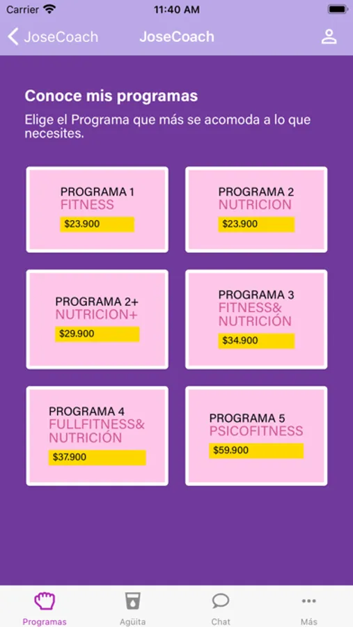 Además desde la misma App podrás comprar tus programas Jose Coach “cambio de hábitos” pudiendo de esta manera hacer todo en un mismo lugar.