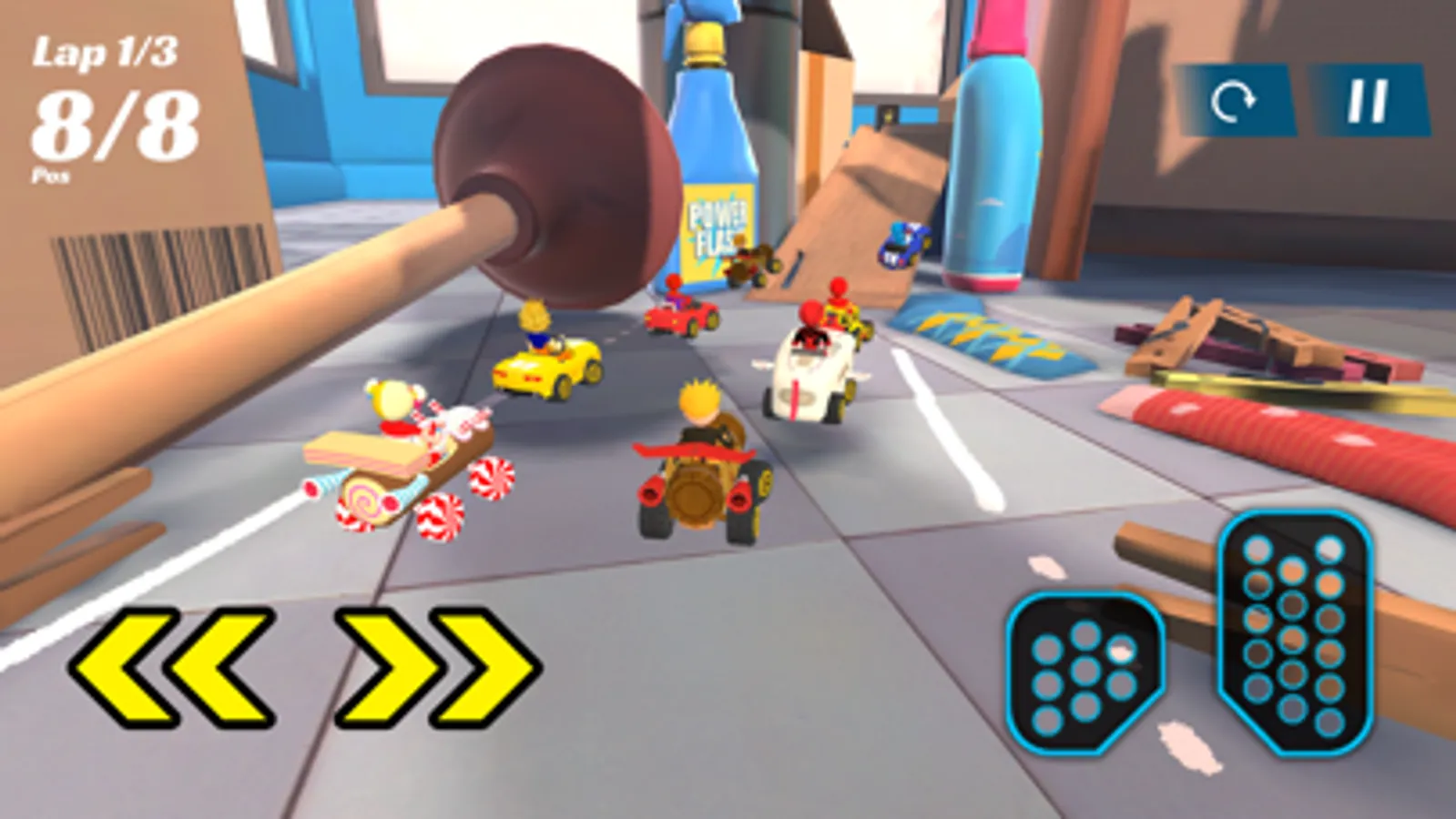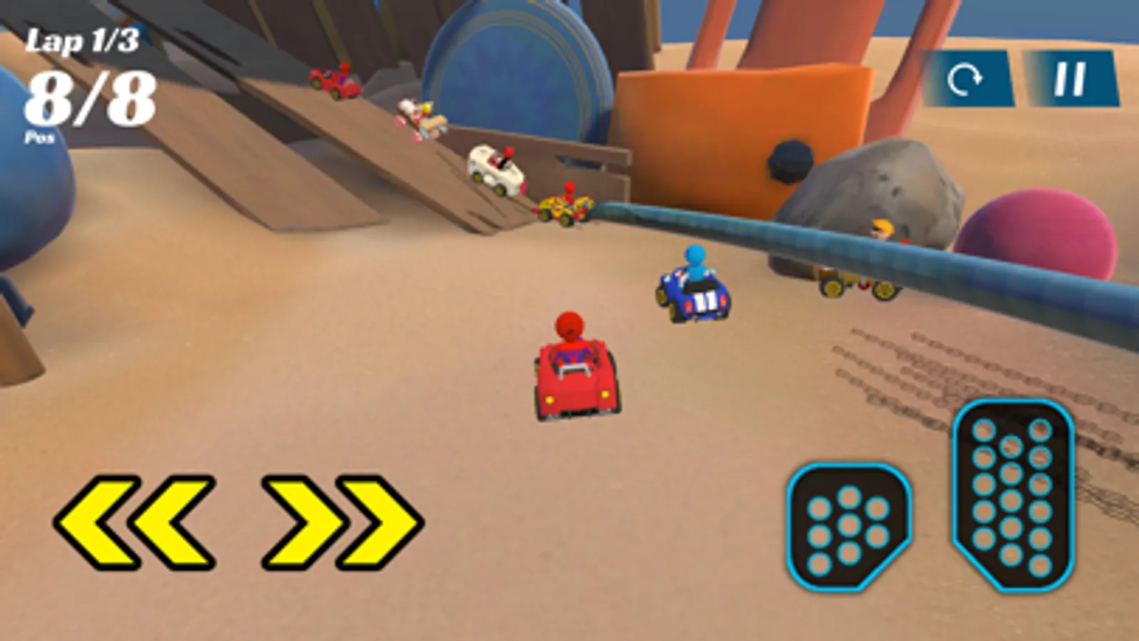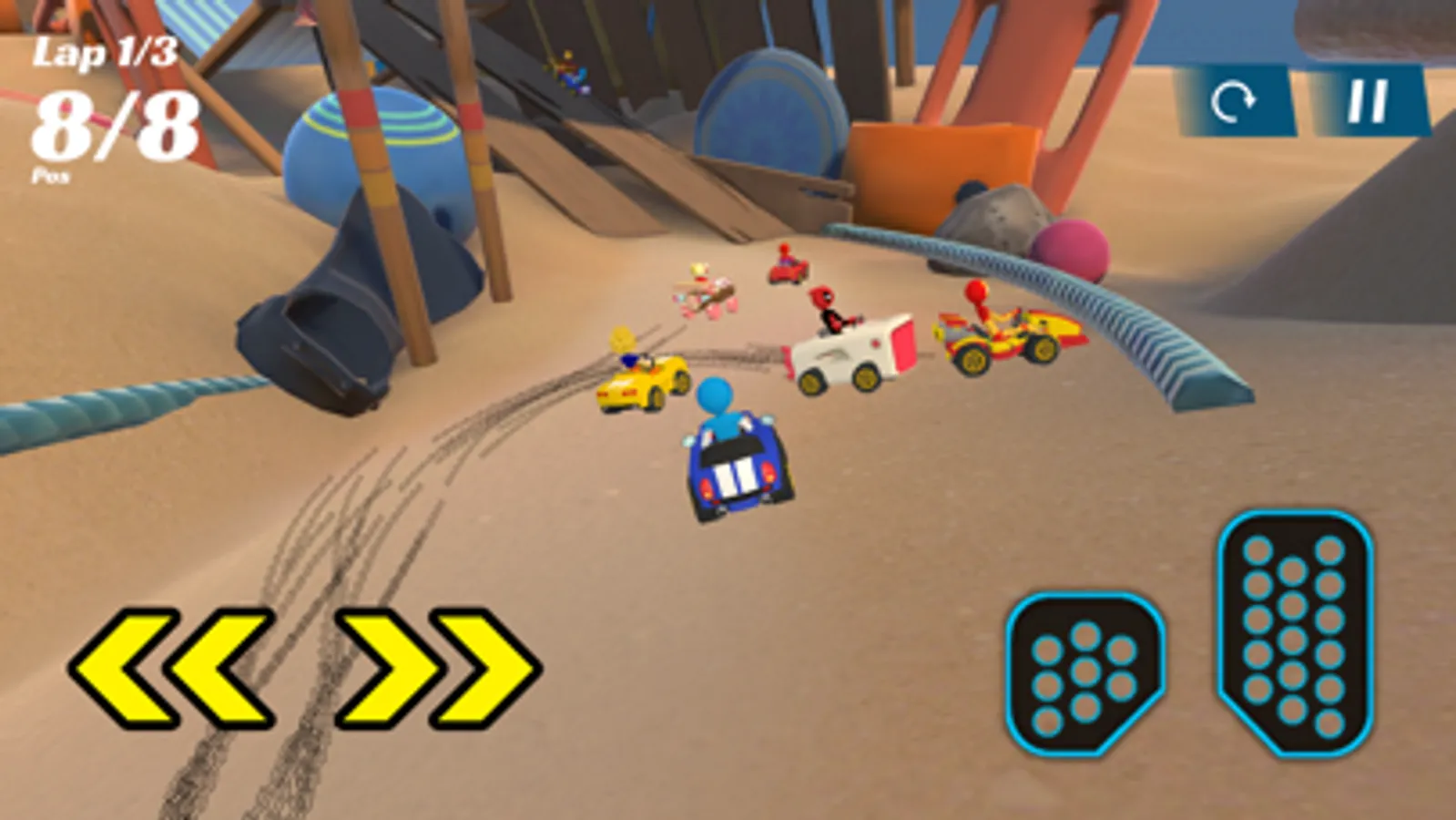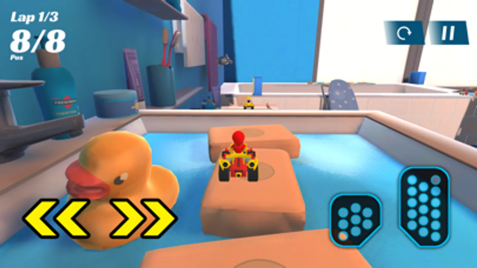 Explore unique race tracks with ramps, obstacles, and more. Enter the giant world of messy bedroom or go exploring the lively beach tracks.