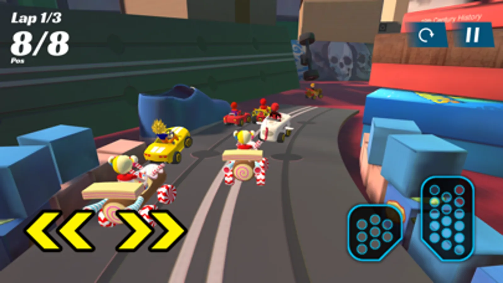Drive your car like you’re driving a real formula car! The control your car with 2 hands. The left for direction and the right to control the gas or reverse pedals.