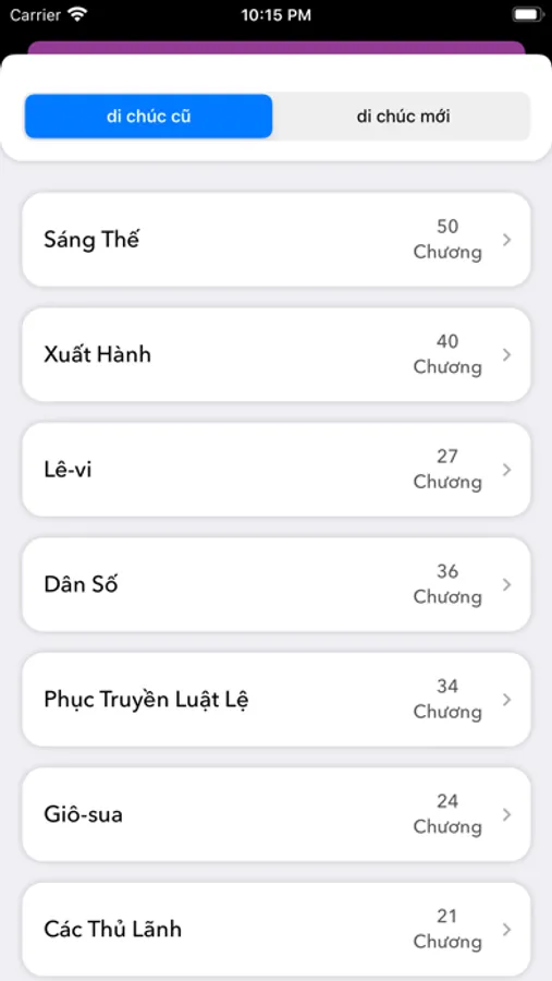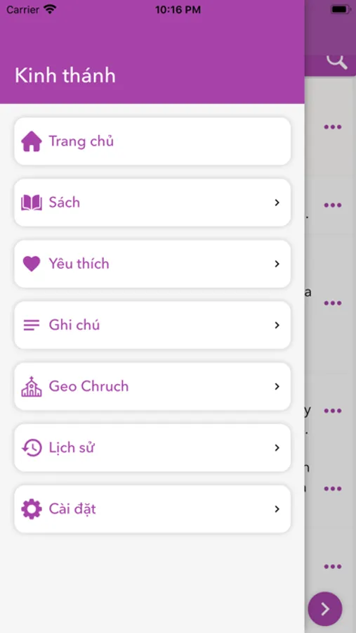 Giao diện trực quan và truy cập nhanh vào sách, chương và câu.