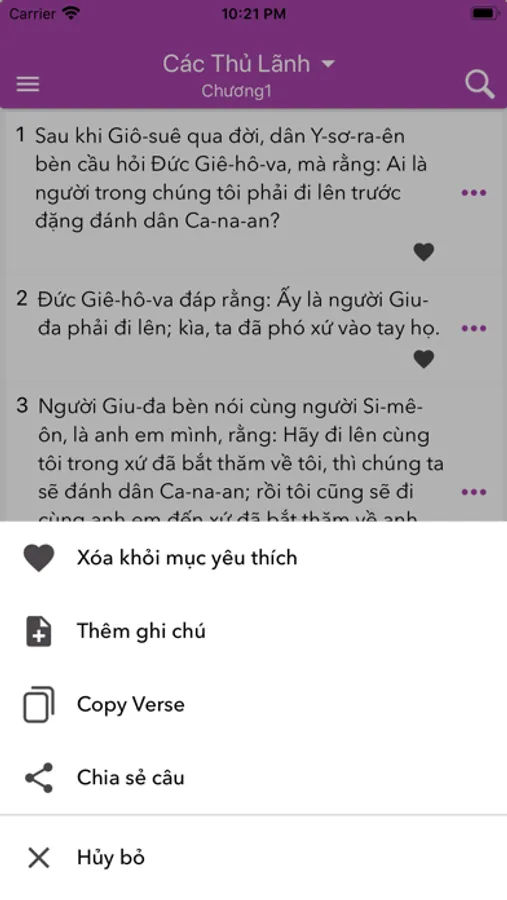 Kinh thánh tiếng việt cũng hỗ trợ phóng to, sao chép và chia sẻ những câu bạn thích