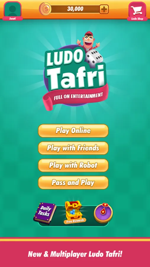 Ludo Tafri is an online multiplayer mobile game & you can enjoy it from any of your mobile devices. This game has also robotic automatic playable characters which can be run in offline mode also the pass & play is a unique feature where you can sit with family/friends & enjoy the game okay on one device. This is the best Ludo game where you can invite your friends by creating the room & sharing code of it via Facebook or WhatsApp. Ludo Tafri is the best casual game in board games which can be played with real characters.