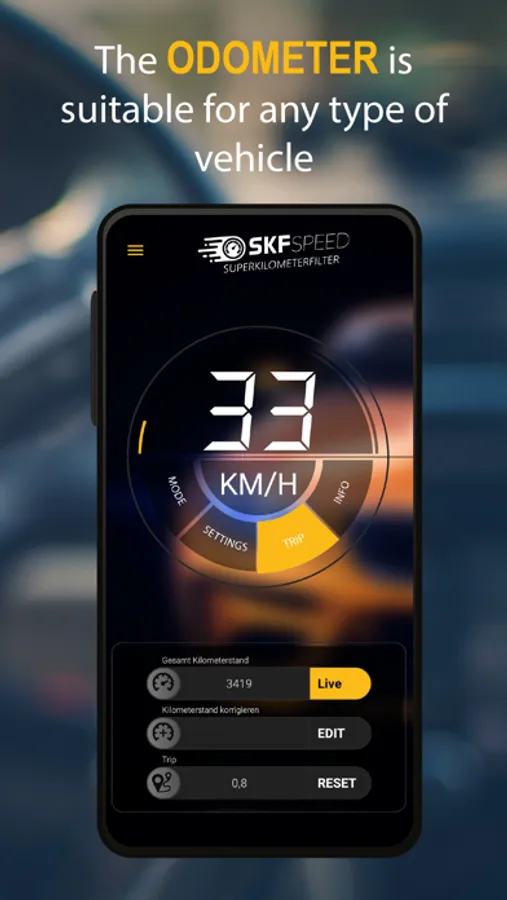 The free SKF Speed app for your iPhone offers many useful functions for your car in the DEMO VERSION. It has a simple and minimalist design, which makes it particularly easy to use. The SKF Speed App is suitable for every vehicle.
