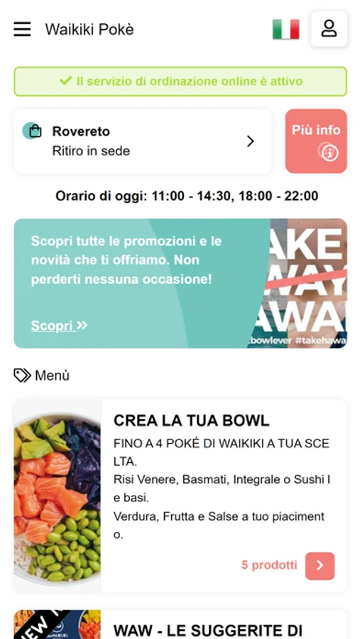 Puoi ordinare il ritiro o la consegna a domicilio direttamente dalla nostra app scegliendo il tuo menù online.