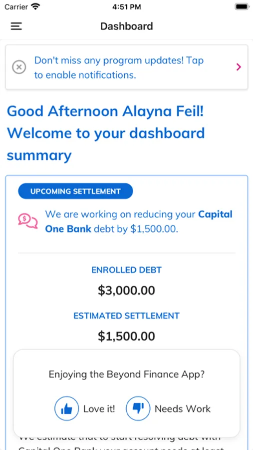 - Receive personal finance tips and inspiration for your debt resolution journey