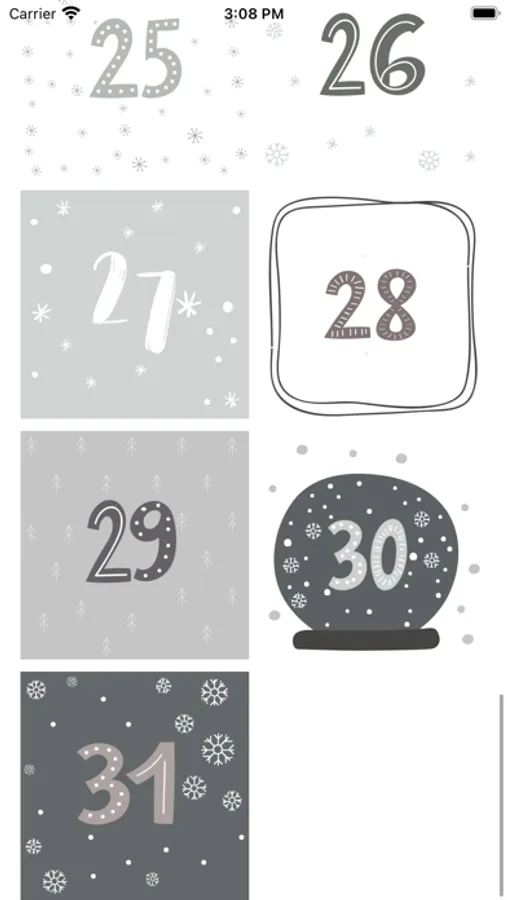 Easy to use: tap and open one square per day and find funny image and idea how to prepare for the Xmas and New Year's Eve.