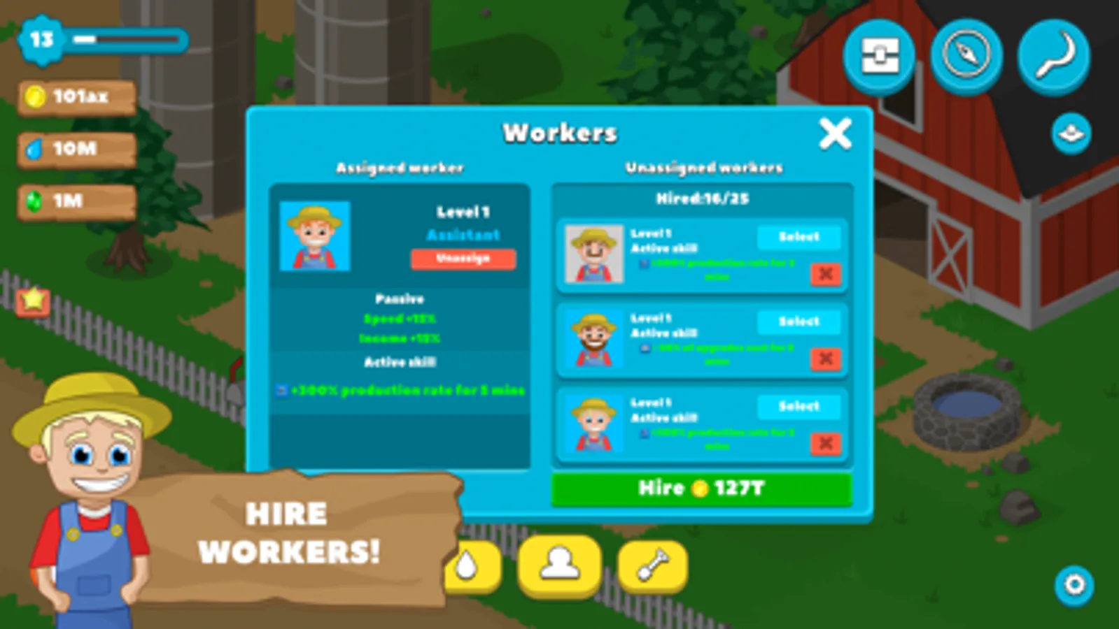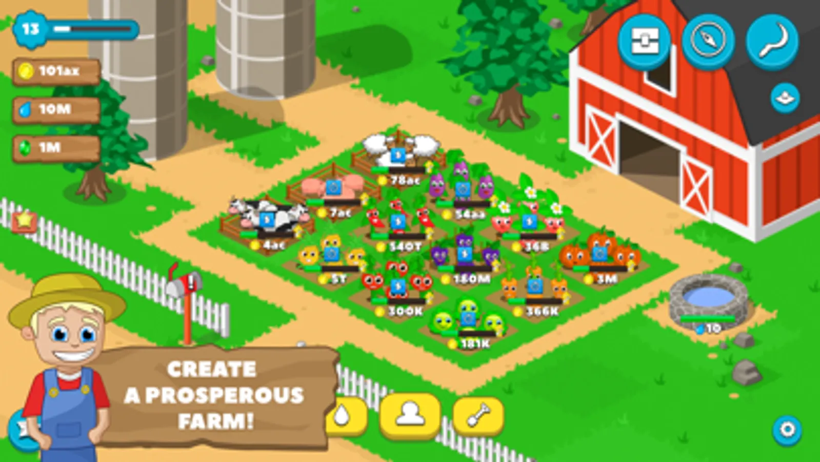 Start your farming career with Farm and Fields on your mobile or tablet. Manage your farm and the fields on it to harvest your dreams. Collect produce from the garden and generate income with one flick of your finger. Upgrade farms with the money earned earlier, and get even more products and money. Hire workers and managers to increase income. Build and upgrade new farms in other cities and manage multiple farms at once!