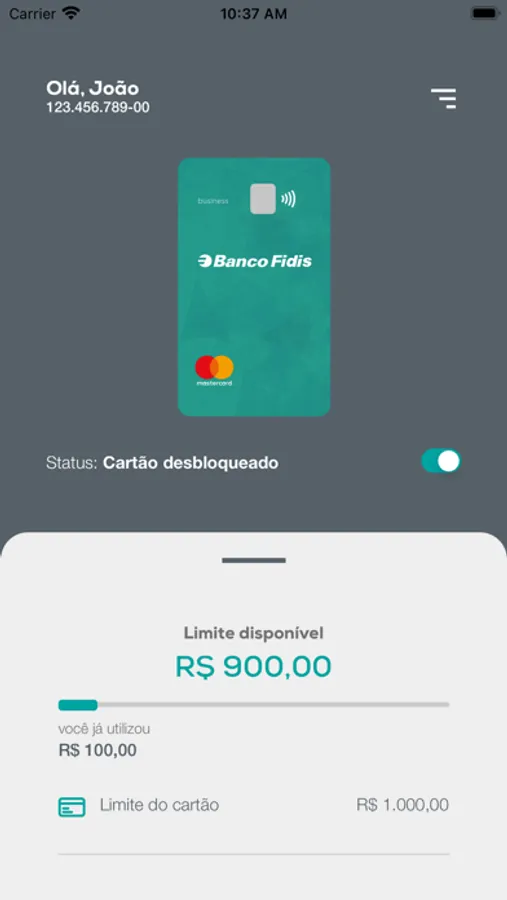 O app Fidiscard é o aplicativo de Cartão de Crédito do Banco Fidis. Com ele, você acompanha em tempo real todos os detalhes do seu cartão de crédito corporativo, inclusive as movimentações, de forma simples, segura e transparente. No app Fidiscard você pode desbloquear seu cartão, gerar o cartão virtual para realização de despesas online com toda segurança, além de poder bloqueá-lo caso necessário. Baixe o app Fidiscard e acesse o cartão direto em seu celular a qualquer hora e lugar!