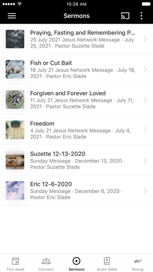 This app will help you stay connected with the day-to-day life of the Jesus Network church. With this app you can: watch or listen to past messages; stay up to date with push notifications; share your favorite messages via Twitter, Facebook, or email; and download messages for offline listening.