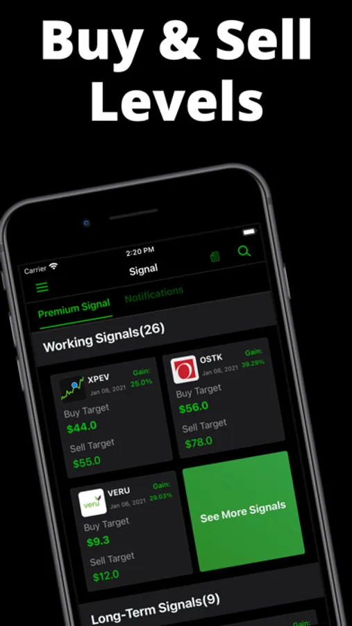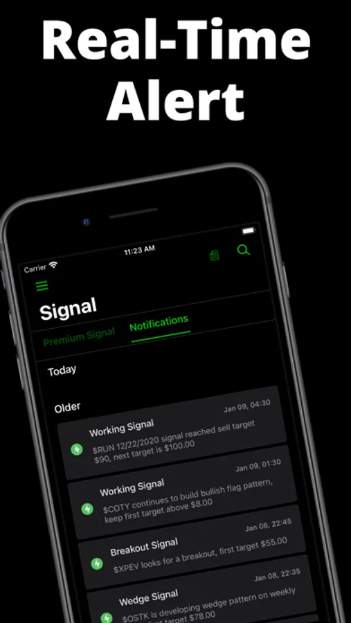 The stocks signal app allows swing trader and day trader to receive best stock signals on every trading day.