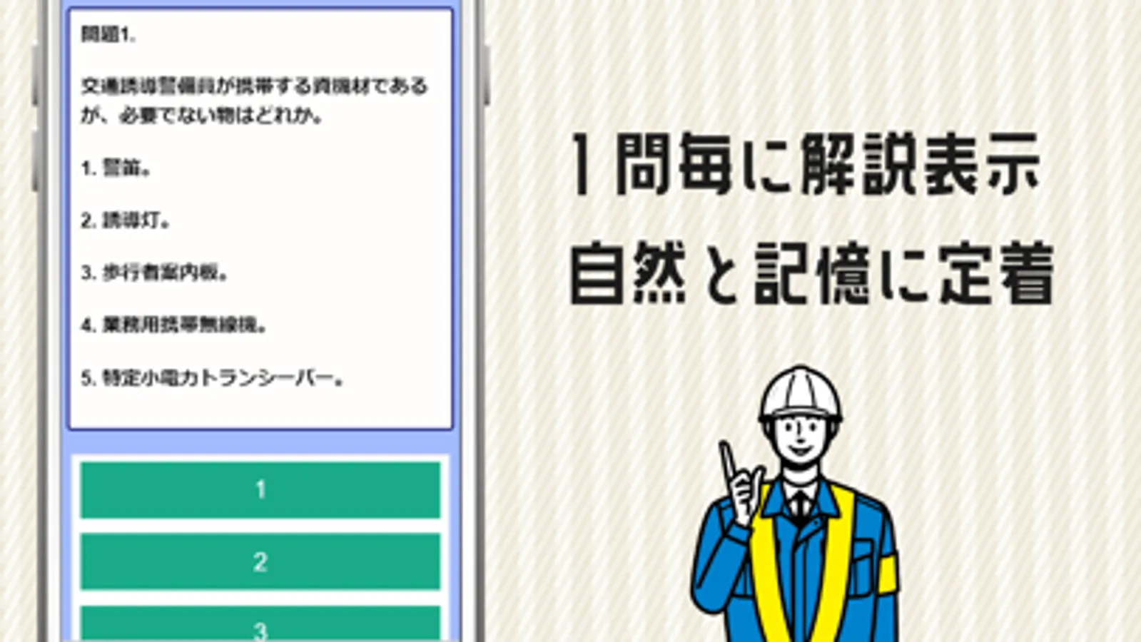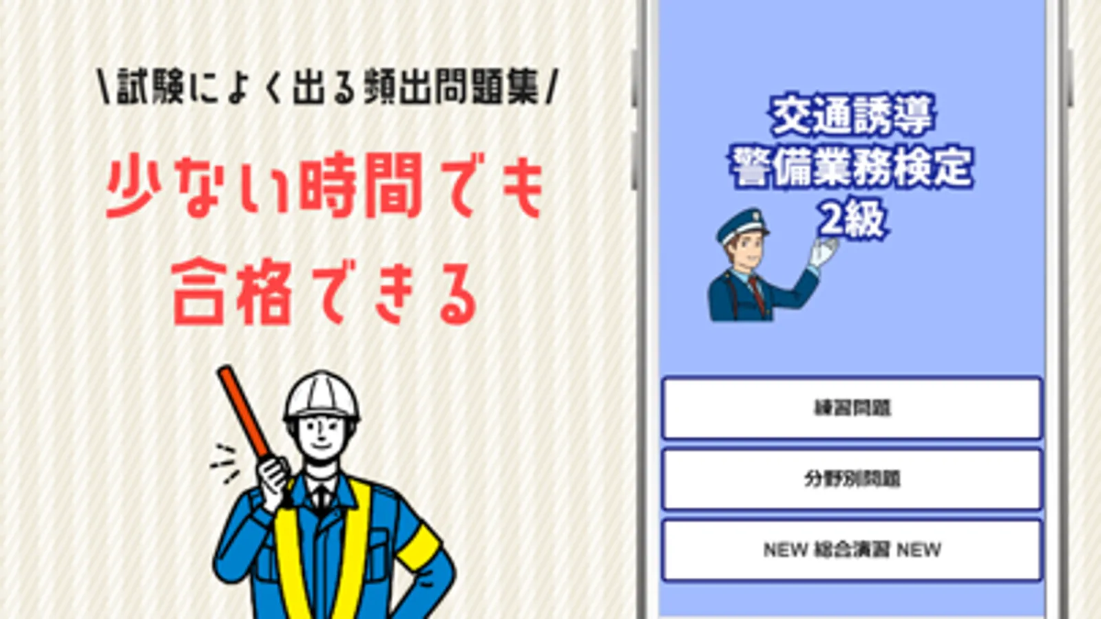 交通誘導警備業務検定2級の学習アプリです。