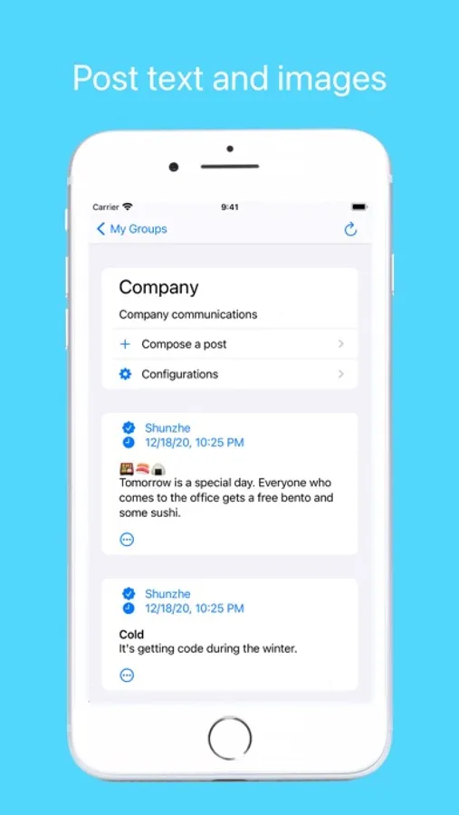 Different from other social networking apps, this is a social network built on Apple iCloud service. Your posts and images are stored in the group owners' iCloud account.