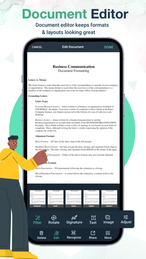 Enjoy a seamless scanning experience with Document scan. Simply point your device's camera at the document, and the app will automatically detect edges and capture high-quality scans.