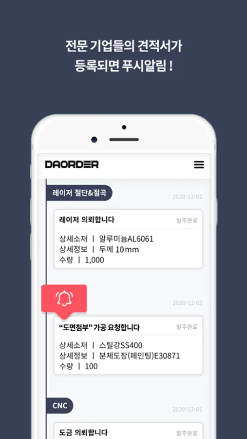 02. 견적요청 실시간 푸시알림, 즉각 입찰 환경 제공