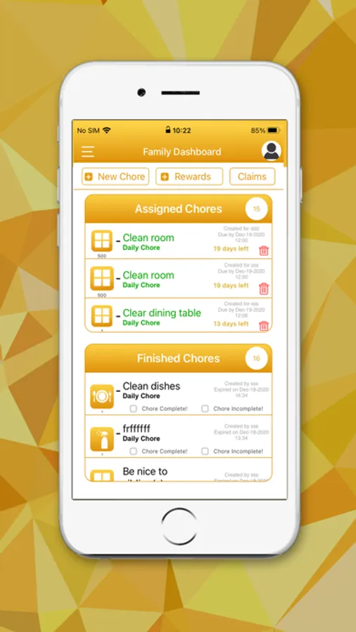 ChoreUp is an incentivized chore management app for families, created to empower children to take on everyday tasks with cheerful attitudes. Parents or parental figures can create daily or one-off chores for their children, and reward them when chores are completed.