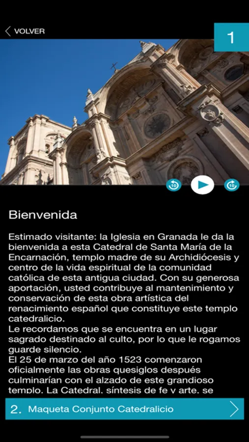 A través de la app de la Catedral de Granada podrás visitar el monumento mientras escuchas cada una de las historias e información de las diferentes partes del monumento.