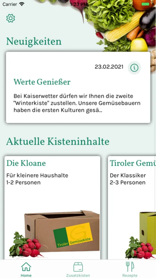 Die Tiroler Gemüsekiste - regionales, frisches Gemüse der Saison vom heimischen Landwirt direkt vor die Haustüre. Immer top informiert zur aktuellen Kiste und über 1000 Rezeptideen rund um das Gemüse aus Tirol.