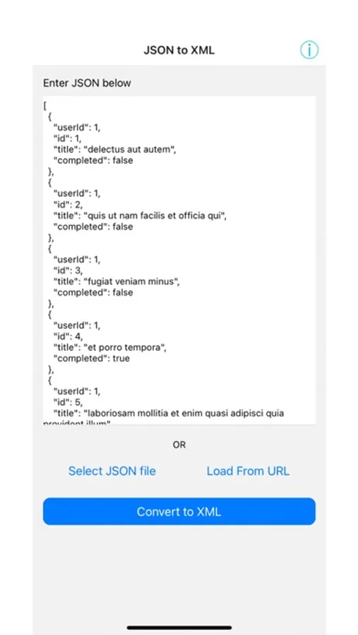 Simple JSON to XML converter app that lets you input JSON as plain text or load the JSON from url or local files