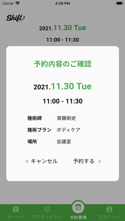 施術者が訪問し、ボディケアをご提供します。Shiftは、柔道整復師、鍼師、灸師等の国家資格保有者がボディケアを行います。施術プランにはボディケア、ストレッチ、鍼、灸などさまざまなプランがあり、一人一人のニーズに合わせて施術することができます。