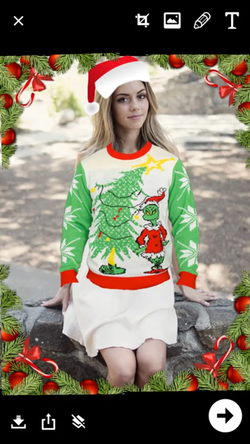 Cute stickers, elegant frames and realistic templates will help you create high quality collage art. Try out our collection of ugly sweaters on your own photos to create a Personalized Xmas Card!