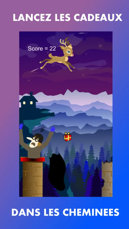 Touchez l'écran pour lancer un cadeau et lancez-le dans la cheminé !