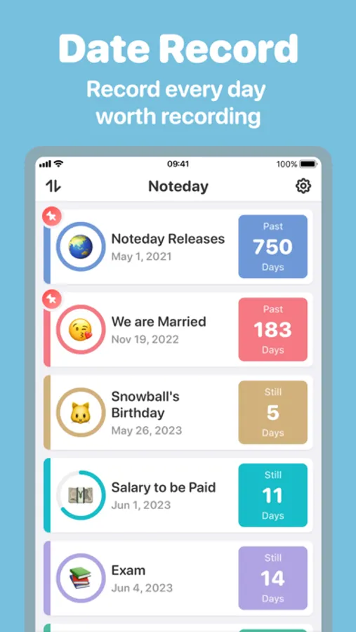 In Noteday, you can record various types of important date events and classify them. It will help you remember these days and remind you when you are getting close to them, giving you enough time to prepare for these important days.