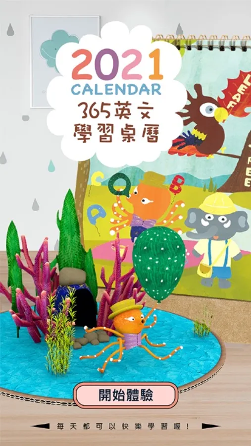 這是2021年AR擴增實境的新產品, 365兒童英文學習桌曆, 本桌曆是由獨立插畫師「pando」創造的動物角色, 可愛的配音詮釋角色的聲音, 教小朋友認識英文、跟著說英文.