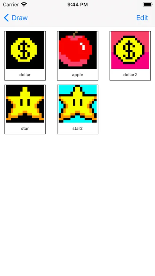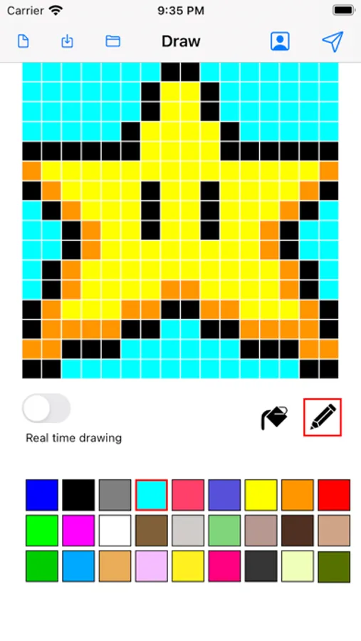 The app currently support canvas resolutions at 8x8, 16x16, 32x32 and 64x64.