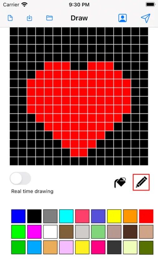 Tap the "frame" icon in the upper right corner to discover your frames and the canvas should adapt to the frame matrix's resolution - or set it manual in the app settings.