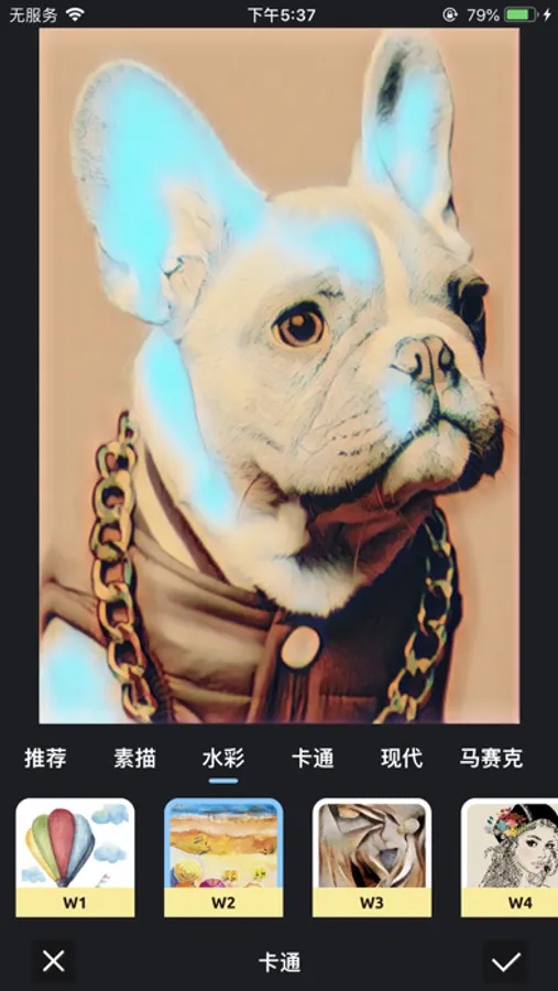 卡漫相机是一款生成卡通动漫图片的App,用户上传自拍照,选择对应的动漫风,然后就可以生成卡通动漫图像了,后期用户可以加上自己喜欢的滤镜,对图片进行裁剪,分享到其他的社交平台。