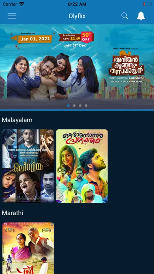 Olyflix is a Virtual theater where film enthusiasts can come and watch new releases. Olyflix is an ATT platform where the latest and classic movies are released to the audience outside India. Currently, we are showing in the USA, Canada, Europe, UK, Australia, New Zealand, Japan, Singapore, and the Middle East (GCC). Viewers can enjoy both the latest cinemas as Premium Video-On-Demand (PVOD) and classic cinemas as Transactional Video-On-Demand (TVOD).