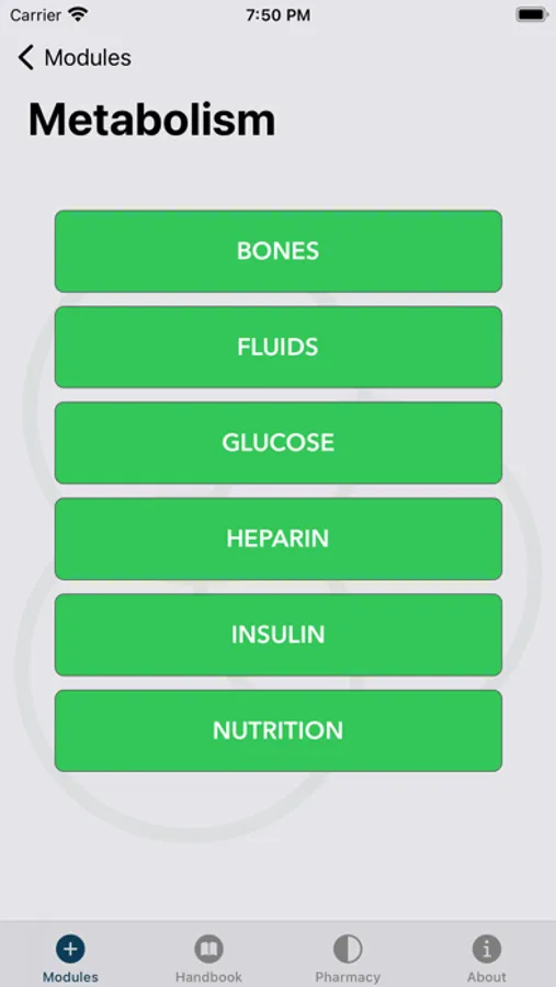 • Metabolism (Bones -- Fluids -- Glucose -- Heparin -- Insulin -- Nutrition)