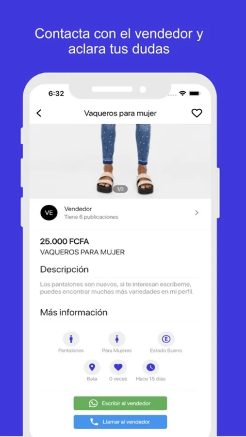 - Rápido: con un clic, contacta con el vendedor mediante WhatsApp o llamándolo directamente.