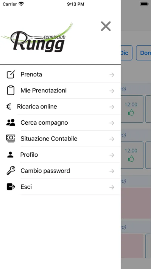 App per la prenotazione dei campi tennis del Tennis Club Rungg ad Appiano sulla strada del vino in provincia di Bolzano