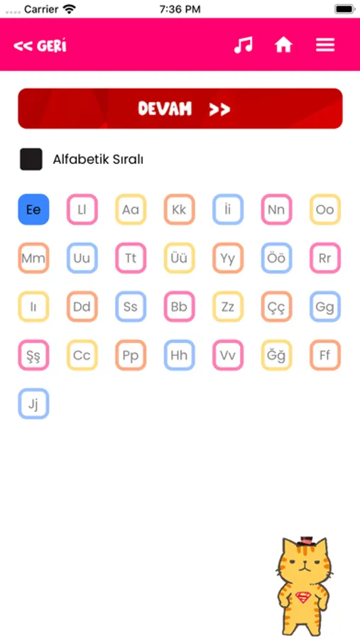 Milli Eğitim Bakanlığının "Dik Temel Harflerle Okuma Yazma Öğretimi" müfredatı kapsamında özenle hazırlanan uygulamamız, çocukları sıkmadan, oyunlar eşliğinde, eğlenceli bir eğitim imkanı sunuyor. Seslerin kolaylığına dayalı ELAKIN veya alfabetik sıraya göre içeriği kendiniz ayarlayabilirsiniz.