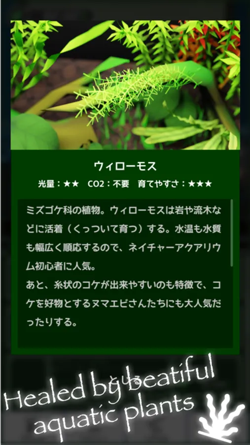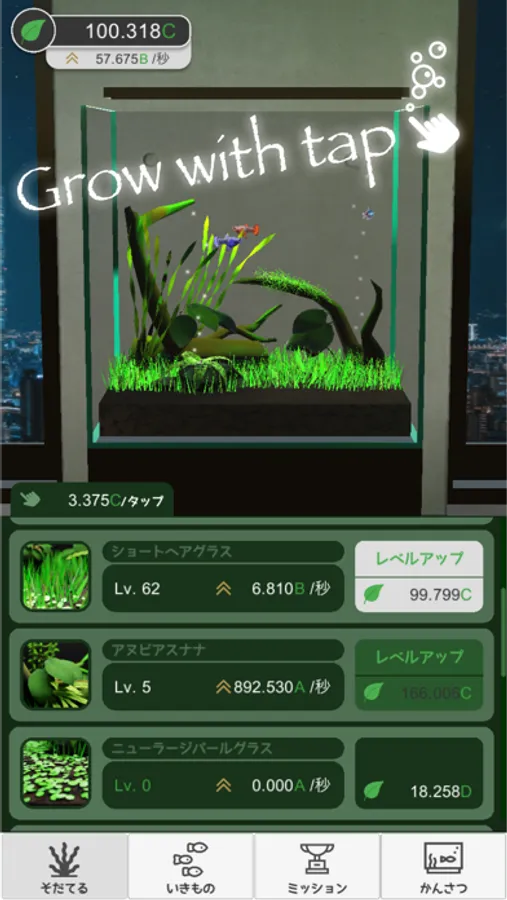 This game is very simple "Incremental" game! Grow aquatic plants and let them photosynthesize a lot.