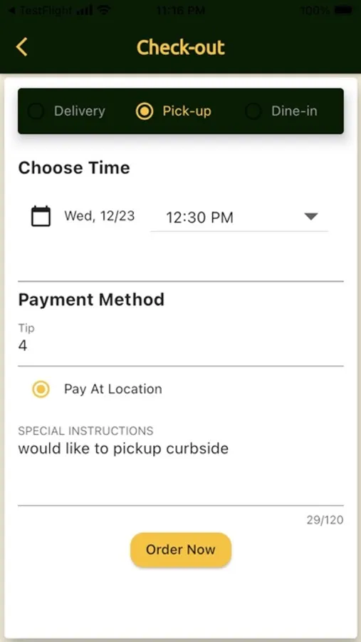 It might be a Pick up/ Dine In/Door Delivery, you can now conveniently order from anywhere.
