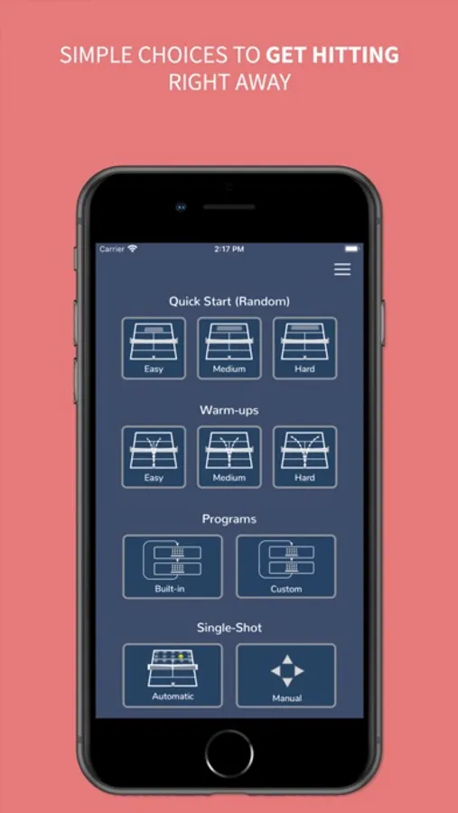 Proton Control pairs wirelessly with your Proton to enable remote control and programing of your ball machine. Inside the phone app you can access built-in training routines and easily create your own custom shot sequences. The Apple Watch app allows control and execution of saved shot sequences without your phone. A Proton ball machine from Hydrogen Sports is required for use.
