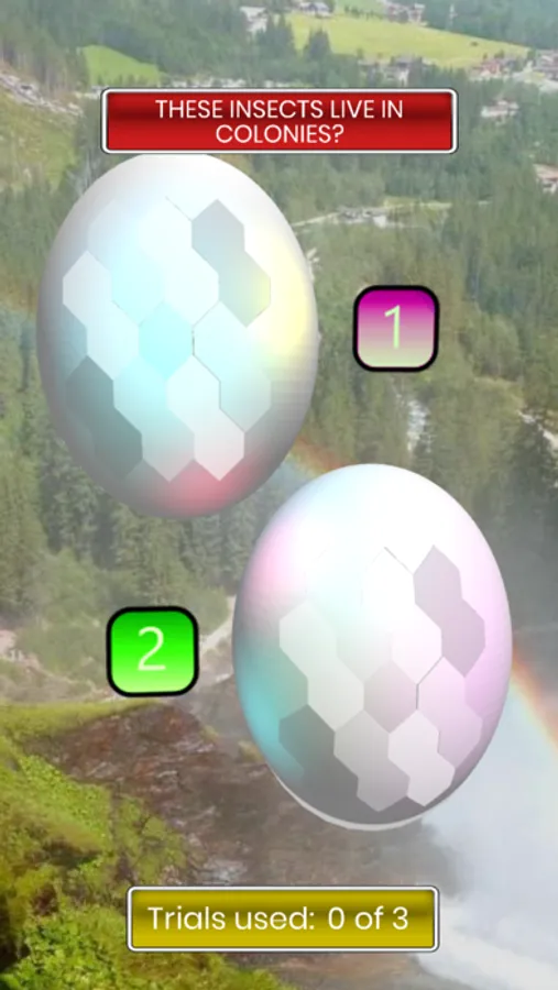 Pick an Egg Challenge is a trivia game that requires knowledge, logic, and some luck. To answer the trivia questions and make the correct selection, you can crack portions of an eggs' shells and reveal portions of the hidden pictures.