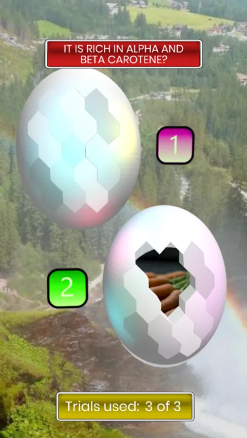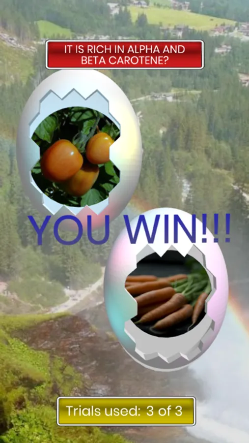 Each trivia question allows you to remove up to three parts of an egg. This triva game was designed with the main purpose of being relaxing, fun and challenging at the same time.