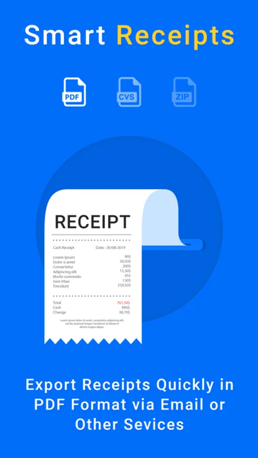 Let Easy Receipt Scanner - Easy Manager your life by keeping your expenses and receipts ordered. Receipts can be group into expense reports which can automatically be sent for approval or billed as an invoice. Expenses are labeled with a vendor and category. All your expenses will be used to generate quarterly and annual summaries which can be easily exported in PDF, CSV, and ZIP format.
