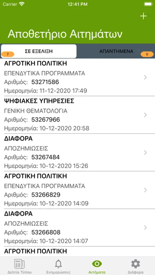 4. Υπηρεσίες προσωποποιημένης εξυπηρέτησης - συμβουλευτικής - Οι πολίτες μετά την αυθεντικοποίησή τους, έχουν πρόσβαση σε προσωποποιημένες υπηρεσίες εξυπηρέτησης και συμβουλευτικής. Έχουν την ευχέρεια να υποβάλλουν από την εφαρμογή του κινητού, αιτήματα εξυπηρέτησης για μεγάλο αριθμό διοικητικών διαδικασιών ή/και θεμάτων του Υπουργείου και των εποπτευομένων φορέων του. Τα αιτήματα των πολιτών είναι εφικτό να συνοδεύονται από φωτογραφίες και γεωγραφική απεικόνιση της περιοχής ή του γεωγραφικού στίγματος για το οποίο υποβάλλουν αιτήματα εκείνη τη στιγμή. Τα αιτήματα εξυπηρέτησης παραλαμβάνουν, οι πύλες εισόδου αιτημάτων στο Υπουργείο (ticketing system) και στους εποπτευομένους φορείς, ανάλογα με το θέμα εξυπηρέτησης, προκειμένου να το διεκπεραιώσουν. Η απάντηση της Υπηρεσίας στέλνεται στη θυρίδα του κινητού του χρήστη.