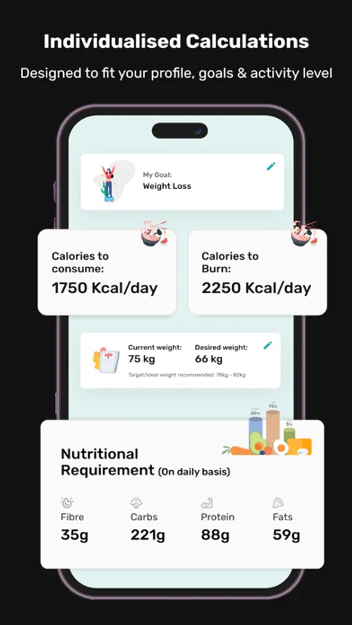 Weight management & adopting a healthy life has been made simple now. We scientifically compute the calories needed by you based on your Gender/ Height / Age / Weight & your lifestyle. Our application then creates a personalised guidelines for your meal plan, which fits into the calories and nutrients needed by you. Best thing is that the diet plan is based on food items which you like to eat.