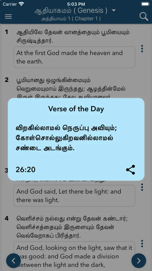 Tamil Bible also supports zooming, copying and sharing of the verses you like
