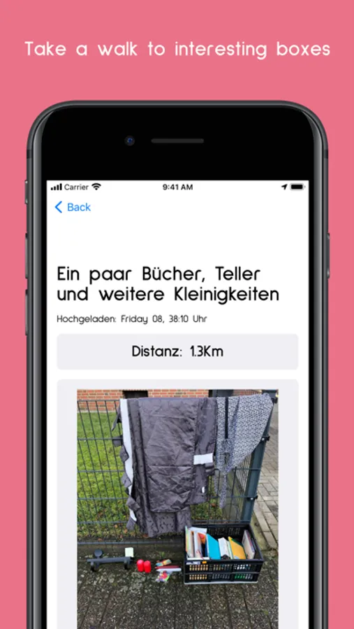 Wenn du etwas zu verschenken hast, kann du deine Kiste hochladen damit andere sie finden können. So wird die Kiste auch schneller leer!