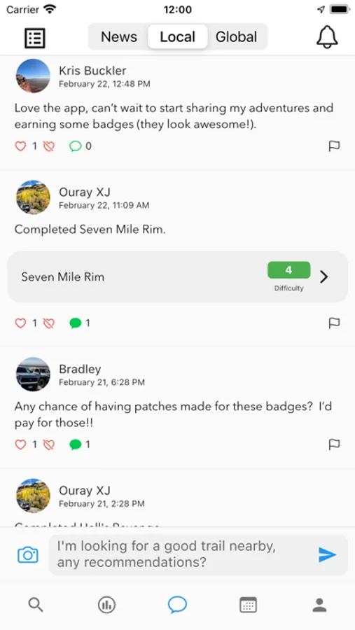 Chat - Looking for people to wheel with? Or need some information about a trail? Reign has a chat that will show you results from users in your general area so you can be in touch with the offroad community.
