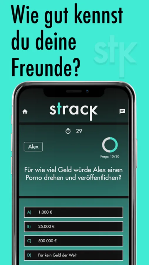 Weißt du wie viele Beziehungen deine Freunde schon hatten oder was sie unbedingt mal ausprobieren wollen? Mit Strack wird das überprüft.