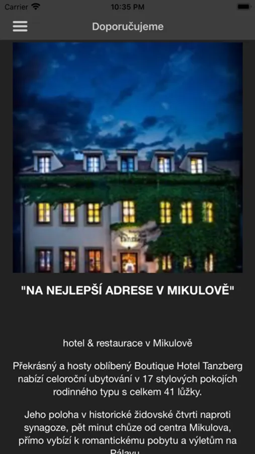 Aplikace Tanzberg obsahuje důležité informace o vinařství. Přes aplikaci si můžete objednat víno, prohlédnout si fotografie, přečíst si aktuality nebo se dozvědět více o víně, vinařství a vinohradnictví. Aplikace obsahuje také formulář, potřebné kontakty, GPS navigaci a důležité odkazy.