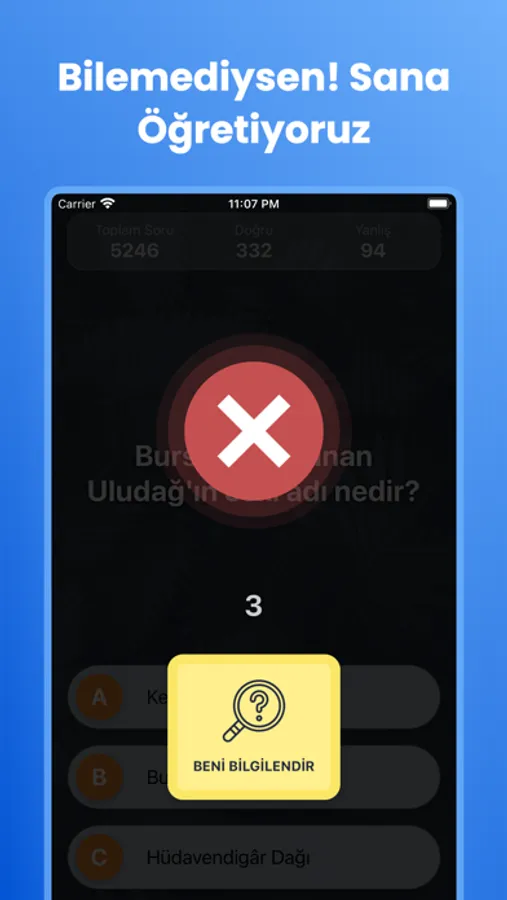 Sanat, tarih, spor, müzik, edebiyat ve daha pek çok konuda yüzlerce soru içeren bu uygulama, sadece Türkçe sorularla dolu! Her soru cevaplandığında, yeni bir soruyla karşılaşacaksınız ve her soru size yeni bir bilgi kazandıracak.