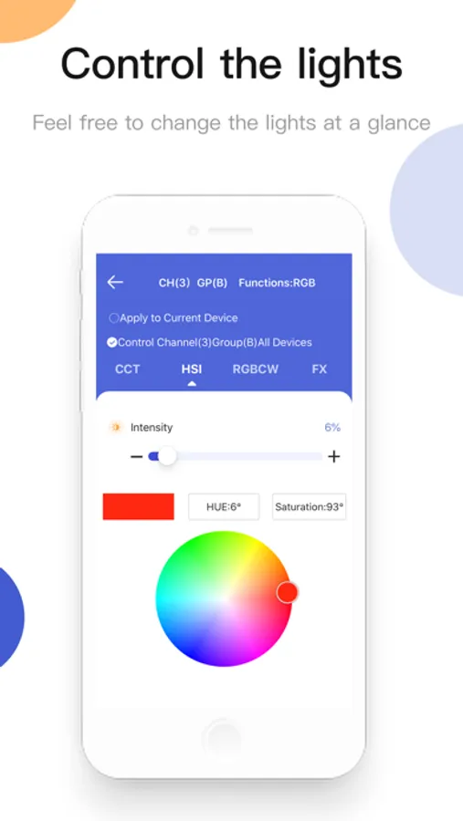 This is an APP that can control the video light through the bluetooth of the mobile phone. With the APP, multiple devices can be control in group and the light can be switched and controlled among four modes which are CCT HSI RGBCW FX.